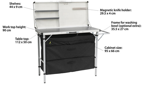 Outwell Padres Kitchen Table With Bamboo Table Top & Side Unit