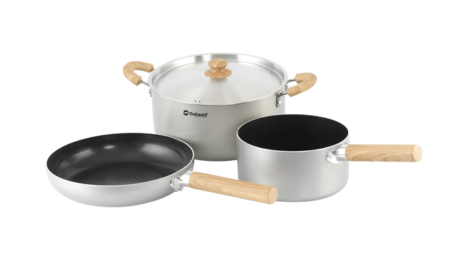 Add style to the kitchen with the Outwell Feast Set Large made in quality aluminium with a durable non-stick cooking surface and a ferrous insert for use with an induction hob.